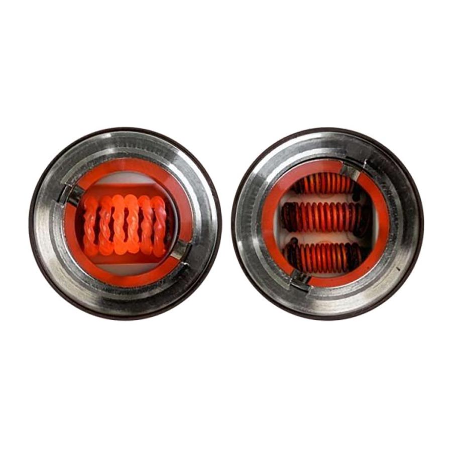 The triple titanium coil is geared towards heavy hitters and large loads. 3 coils provides a substantial amount of heat and surface area to make quick work of even larger loads of wax. The triple titanium coil is wrapped around black ceramic rods which are porous in nature to allow you wax to wick, rather than slip off the coils.